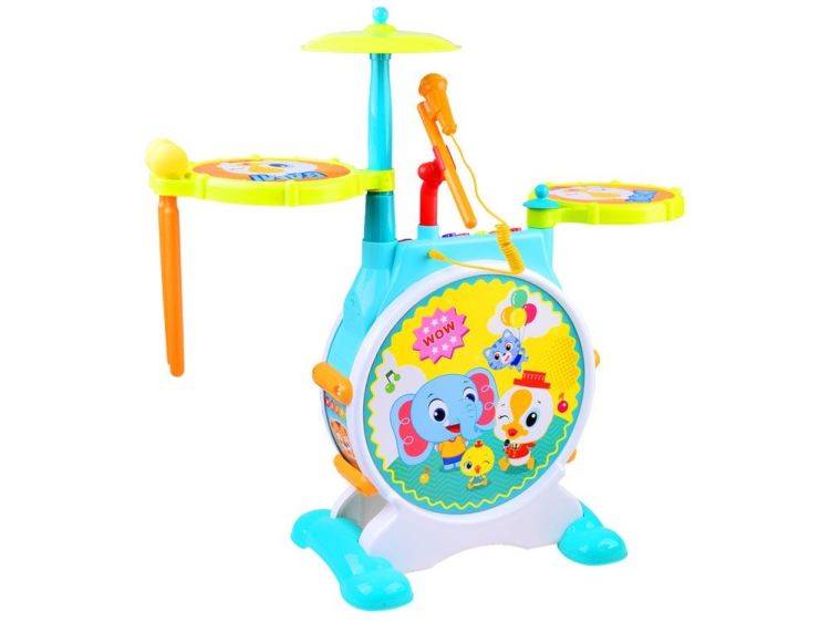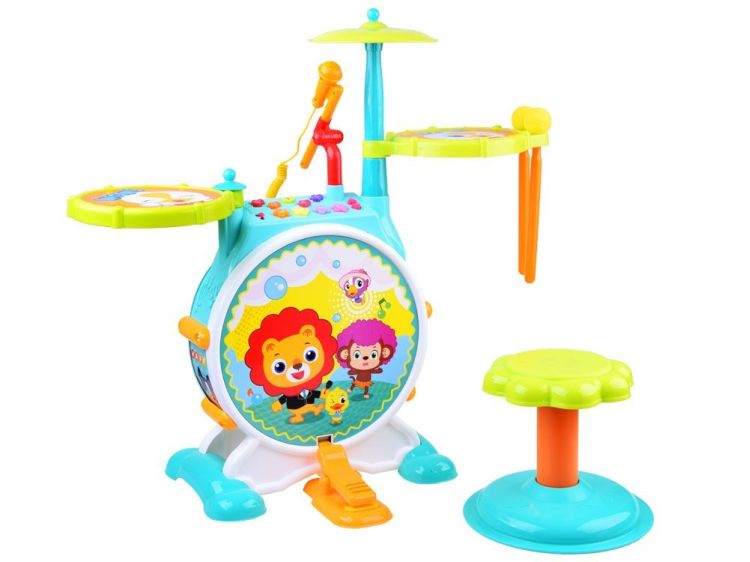 Setul de tobe Hola Banging Bopping pentru copii va va incuraja micuta stea rock sa gandeasca si sa actioneze creativ! Setul de baterii inteligente are doua tobe, un tambur de bas si un cinal. În plus, exista microfonul stand-up care le va purta vocea peste camera. Banging Bopping Drum poate fi comutat intre doua moduri (Melody si Drum), care ii permit copilului sa se joace impreuna cu melodiile sau sa se joace pe propriul canal. Butoanele de control al volumului va permit sa opriti muzica atunci cand aveti nevoie sau sa o intoarceti pentru a le asculta. Jucariile muzicale ofera copiilor o oportunitate de a-si perfectiona talentul pentru muzica in timp ce se joaca si experimenteaza cu sunetul. Caracteristicile produsului: - Tambur de baza de lucru, toiaguri moi, tambururi si scaune de jucarie, - Melodii si sunete preprogramate, - Butoane de iluminare, - Cinele: produc efecte sonore asemanatoare vietii, - Pedala de bas: pentru sunete de bas realiste, - Control volum mare / mic, - Microfon detasabil, - Asamblare rapida si usoara, Include: - Bass Drum, Cinele, 2 Snare Tobe, Microfon, 2 Sticks Drum & Scaun, - 5 butoane de ritm, - 4 butoane de selectare a modului de iluminare, - Sunete de tambur, - 10 Melodii, - 3 ritmuri