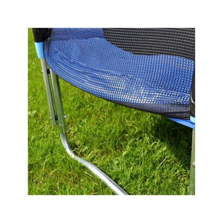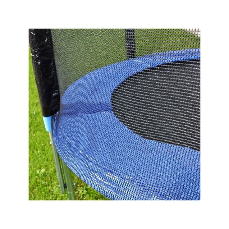 - De jur-imprejur trambulina are plasa de siguranta din polipropilena ce se inchide cu fermoar. Plasa este destinata protectiei, nu pentru a efectua sarituri cu recul.