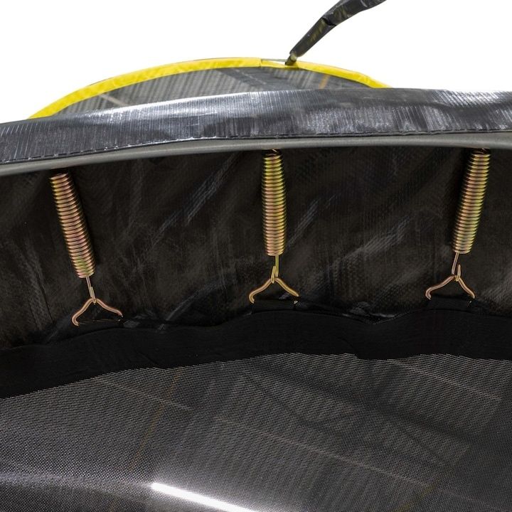 -Trambulina pentru copii, Dunlop, plasa de protectie cu fermoar, dimensiuni 244x200 cm, negru/galben