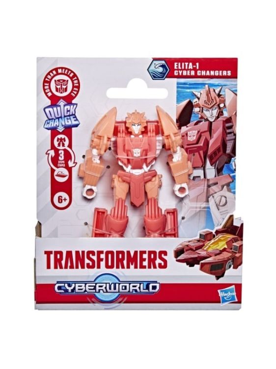 Transformers CYBERWORLD robot convertibil. In Transformers CYBERWORLD, copiii decid ce se intampla si totul incepe cu jucarii minunate precum figurinele Cyber Changers. Aceasta jucarie Transformers de 10 cm se transforma din modul robot in modul alternativ si este suficient de simpla pentru copiii cu varsta de 6 ani si peste. Ofera copiilor un plus de inspiratie pentru povestiri cu jucariile CYBERWORLD suplimentare (fiecare vanduta separat, in functie de disponibilitate) si descopera personaje unice, moduri alternative, medii si multe altele. Fanii obiectelor de colectie Transformers, precum si noii veniti, vor adora sa descopere aceasta abordare a universului Transformers, unde singura constanta este schimbarea. Acest pachet contine personajul Elita 1.