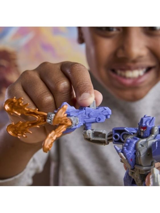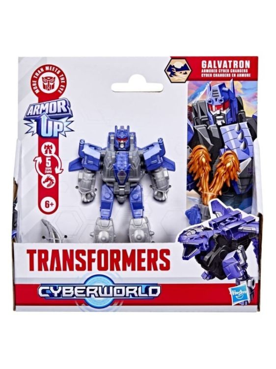 In Transformers CYBERWORLD, copiii decid ce se intampla - si totul incepe cu jucaria minunata precum figurina blindata. Aceasta jucarie convertibila de 10 cm se schimba de la modul robot la modul alternativ si este suficient de simpla pentru copiii cu varsta de 6 ani si peste. Vine cu accesorii interesante care pot fi atasate in ambele moduri. Ofera copiilor un impuls puterii de povestire cu jucarii CYBERWORLD suplimentare (fiecare vanduta separata, in functie de disponibilitate) si descopera personaje unice, moduri alternative, medii si multe altele. Fanii obiectelor de colectie Transformers, precum si noii veniti, vor adora sa descopere aceasta abordare a universului Transformers, unde singura constanta este schimbarea. Acest pachet contine personajul Galvatron.
