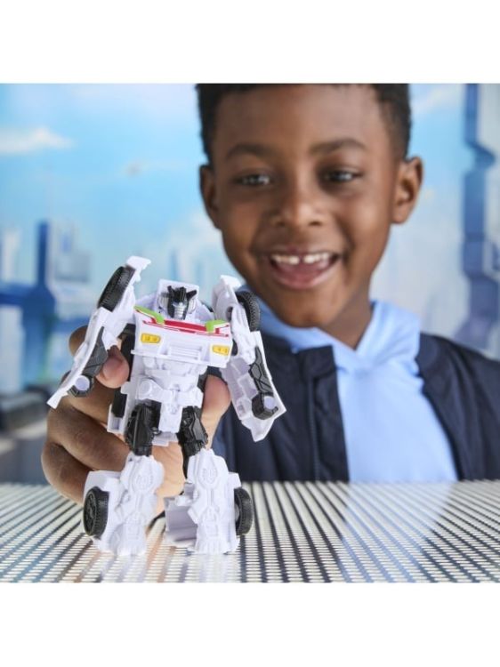 Transformers CYBERWORLD robot convertibil. In Transformers CYBERWORLD, copiii decid ce se intampla si totul incepe cu jucarii minunate precum figurinele Cyber Changers. Aceasta jucarie Transformers de 10 cm se transforma din modul robot in modul alternativ si este suficient de simpla pentru copiii cu varsta de 6 ani si peste. Ofera copiilor un plus de inspiratie pentru povestiri cu jucariile CYBERWORLD suplimentare (fiecare vanduta separat, in functie de disponibilitate) si descopera personaje unice, moduri alternative, medii si multe altele. Fanii obiectelor de colectie Transformers, precum si noii veniti, vor adora sa descopere aceasta abordare a universului Transformers, unde singura constanta este schimbarea. Acest pachet contine personajul Wheeljack.