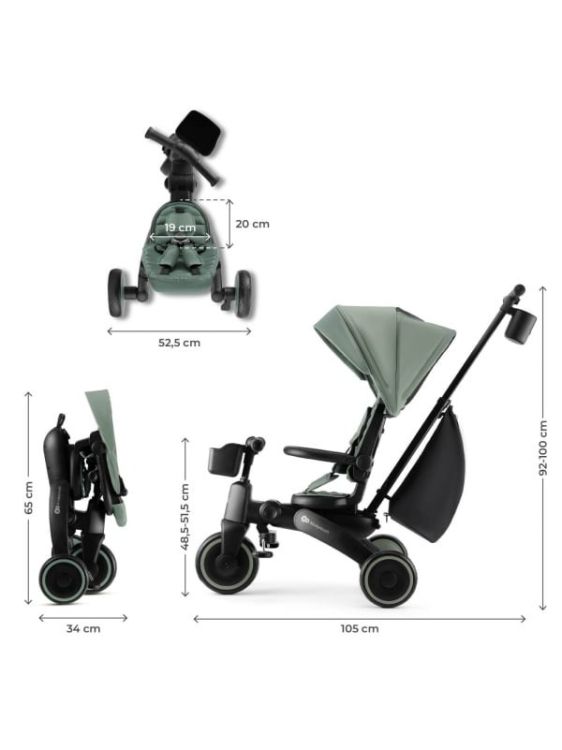 Tricicleta multifunctionala 5 in 1 KINDERKRAFT JAZZ 2, GREEN pentru copii intre 9 luni si 5 ani Va prezentam KINDERKRAFT JAZZ 2 GREEN tricicleta pliabila moderna 5 in 1, proiectata pentru copiii intre 9 luni si 5 ani. Aceasta tricicleta multifunctionala creste impreuna cu copilul tau, adaptandu-se nevoilor sale in fiecare etapa de dezvoltare. 5 moduri de utilizare o singura tricicleta pentru multi ani KINDERKRAFT JAZZ 2 GREEN ofera configuratii diferite, pe care le poti adapta cu usurinta la varsta si abilitatile copilului Etapa timpurie (9-18 luni) control total al parintelui cu masuri de protectie pentru cei mai mici dintre copii. Etapa de invatare (18-24 luni) copilul incepe sa pedaleze, in timp ce parintele continua sa controleze directia. Etapa de antrenament (2-3 ani) cel mic este mai independent si invata sa pedaleze si sa controleze directia. Etapa de independenta (3-4 ani) copilul merge singur pe tricicleta. Etapa de expert (4-5 ani) transformarea intr-o bicicleta fara pedale pentru cei mai avansati mici biciclisti. Pliere compacta ideala zi de zi si in calatorii Datorita constructiei bine gandite, KINDERKRAFT JAZZ 2 GREEN se poate plia in cateva secunde fara a utiliza unelte. Dupa pliere, bicicleta ocupa putin spatiu, acest lucru facand transportul si depozitarea mai usoare, chiar si in spatiile mici. Dupa pliere pastreaza o pozitie stabila, asa ca o poti depozita atat vertical, cat si orizontal. Scaun pivotant CLICK&TWIST flexibilitate si confort Scaunul care se roteste la 360° permite asezarea copilului cu fata sau spatele catre directia de mers. Aceasta solutie ii permite celui mic sa se simta in siguranta, permitandu-i contactul vizual cu parintele sau observarea lumii inconjuratoare. În plus, reglarea scaunului se poate face in ambele pozitii, potrivind bicicleta la inaltimea copilului si oferindu-i astfel confort sporit. Reglare pe mai multe niveluri potrivita pentru nevoi care se schimba rapid KINDERKRAFT JAZZ 2 GREEN este dotata cu un maner telescopic pentru parinte, scaun si parasolar reglabile. Aceste functii permit adaptarea perfecta a bicicletei la nevoile copilului si preferintele insotitorului, oferind o utilizare confortabila si ergonomica. Siguranta si control liniste pentru parinte Tricicleta KINDERKRAFT JAZZ 2 GREEN este dotata cu centuri de siguranta in 5 puncte, bariera detasabila si manere antialunecare. Functia de pedalare libera ii permite copilului sa invete sa pedaleze in timp ce parintele are control deplin asupra directie de deplasare. Perfecta pentru orice vreme protectie tot anul Copertina impermeabila cu filtru UPF50+ il protejeaza pe copil de soare si ploile usoare. Unghiul de inclinare se poate regla pentru a asigura protectia optima in diferite conditii de vreme. În plus, fereastra incorporata permite observarea discreta a celui mic in timpul plimbarii. Prin alegerea tricicletei KINDERKRAFT JAZZ 2 GREEN, investesti intr-o bicicleta multifunctionala, care se adapteaza la nevoile copilului tau, asigurandu-i protectia, confortul si bucuria de a descoperi lumea in fiecare etapa de dezvoltare. KINDERKRAFT JAZZ 2 GREEN Tricicleta pliabila 5 in 1 pentru copii de la 9 luni la 5 ani ✔ Creste impreuna cu copilul cele 5 moduri de utilizare permit adaptarea bicicletei la varsta si abilitatile copilului, de la primele plimbari la mersul independent. ✔ Pliere compacta sistemul de pliere rapida permite plierea bicicletei in cateva secunde fara a folosi unelte, facand mai usoare transportul si depozitarea, chiar si in spatii mici. ✔ Scaun pivotant 360° datorita functiei CLICK&TWIST copilul poate calatori cu fata sau spatele catre directia de mers, bucurandu-se de sentimentul de siguranta si mai mult confort. ✔ Siguranta si control deplin centurile in 5 puncte, bariera detasabila si functia de pedalare libera ii permit copilului sa invete sa pedaleze in timp de parintele controleaza directia de deplasare. ✔ Confort in orice conditii copertina impermeabila cu UPF50+, manerul pliabil pentru parinte si rotile amortizate EVA asigura atat confortul copilului, cat si al insotitorului. Specificatii Materialul cadrului plastic Materialul rotilor EVA Dimensiuni Înaltimea bicicletei depliate pana la manerul parintelui 92-100 cm Înaltimea bicicletei depliate pana la copertina 70 cm Lungimea bicicletei depliate cu maner 125 cm Lungimea bicicletei depliate fara maner 93, 5 cm Latimea bicicletei depliate 52, 5 cm Adancimea scaunului 19 cm Latimea scaunului 20 cm Latimea spatarului 22 cm Lungimea spatarului 40 cm Distanta de la sol la maner 48, 5-51, 5 cm Diametrul rotilor din fata 20 cm Diametrul rotilor din spate 17 cm Distanta dintre rotile din spate 52, 5 cm Înaltimea bicicletei pliate fara maner, cu copertina 78 cm Înaltimea bicicletei pliate fara maner, fara copertina 65 cm Latimea bicicletei pliate fara maner 34 cm Lungimea bicicletei pliate fara maner 34 cm