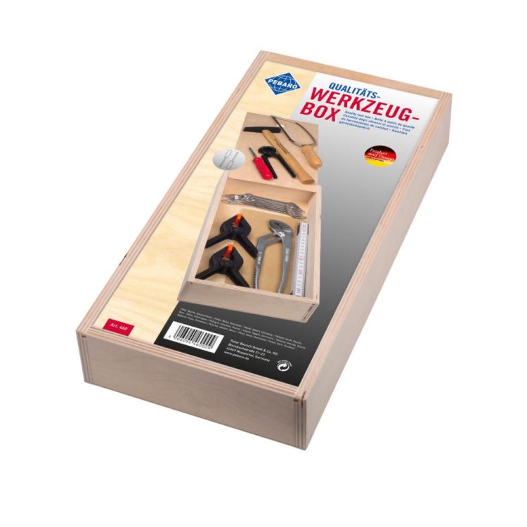 -Trusa de unelte de calitate, ambalate in cutie de lemn, 16 piese, Pebaro 460