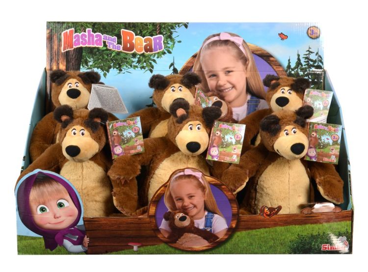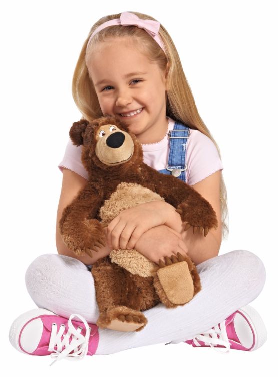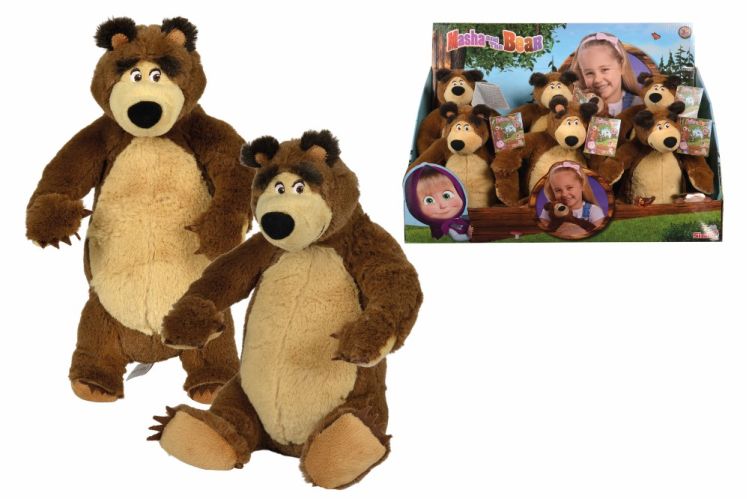 Haiosul urs de plus din serialul Masha si Ursul are inaltimea de 25 cm, 2 modele, unul sta in picioare si unul poate sta si in sezut.