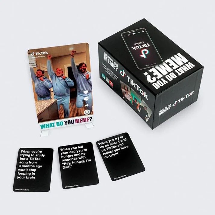 What Do You Meme? Editia TikTok este expansiunea destinata in special aplicatiei TikTok. Pregatiti-va sa creati noi figuri(meme) specifice imaginatiei voastre destinate prietenilor folosind continuturile creatorilor preferati de voi pe TikTok. Concureaza cu prietenii (sau familia, daca esti curajos) pentru a potrivi cartile foto TikTok cu cartile de subtitrare, creand combinatii proprii hilare si populare de meme-uri.